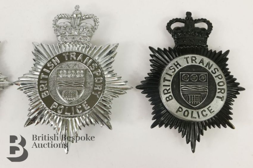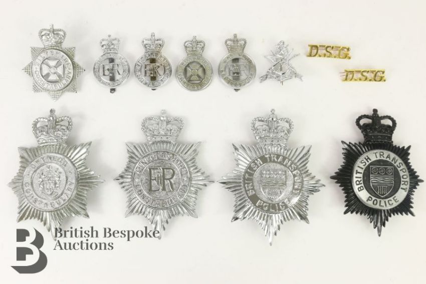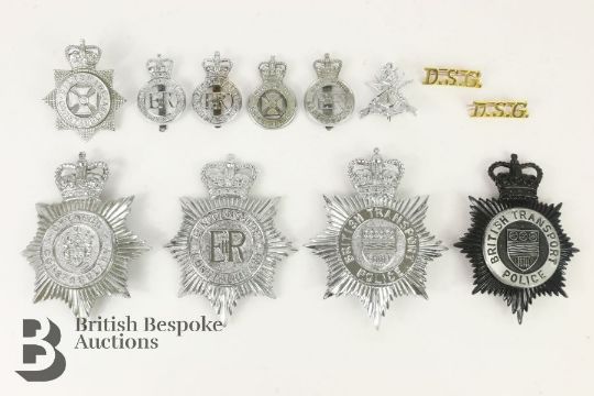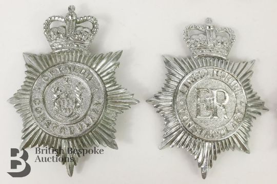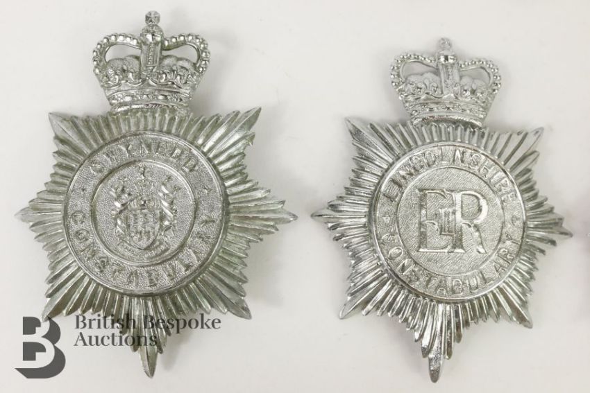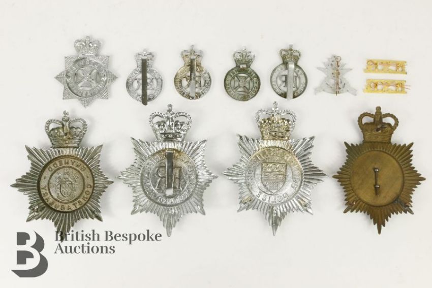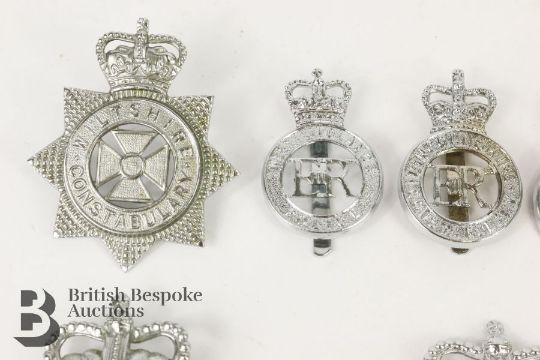 Collection of Civil Police helmet plates and hat badges and transport for Wiltshire, Gwynedd etc.