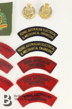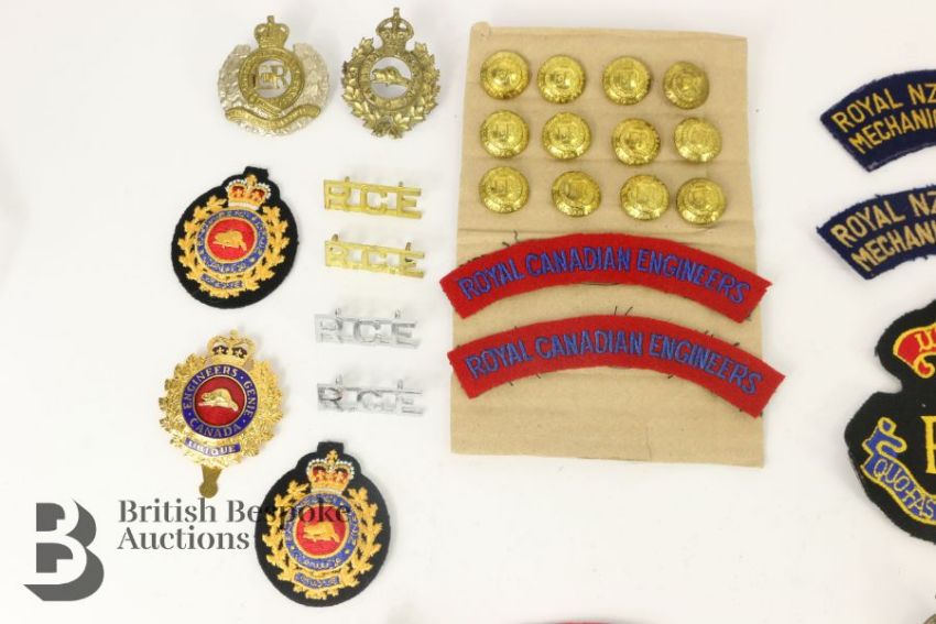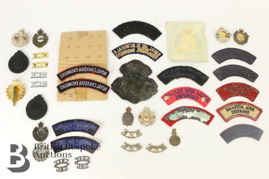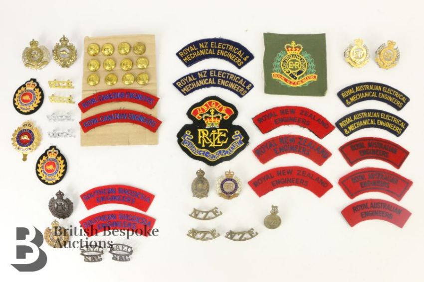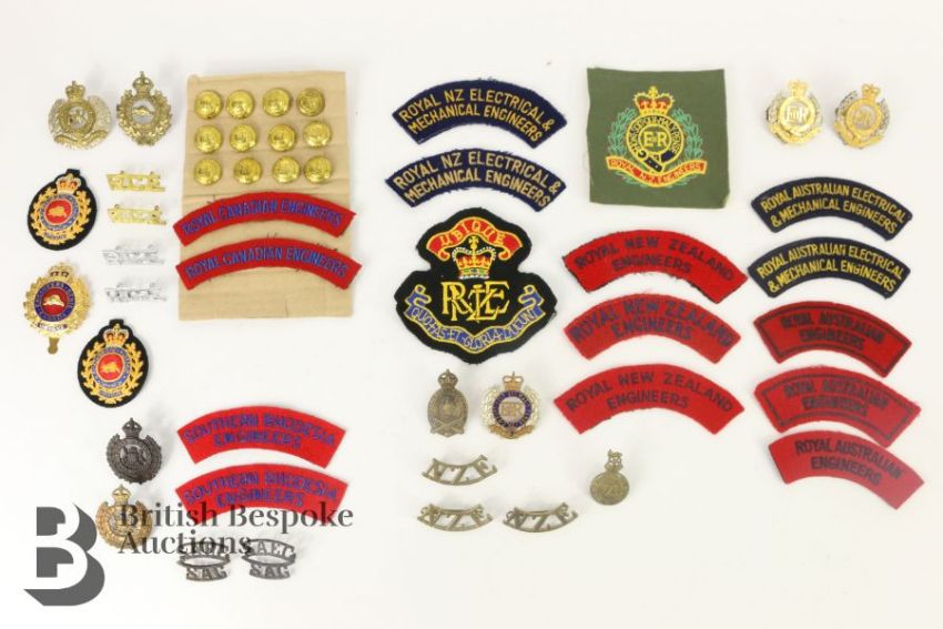 Collection of Colonial Royal Engineers insignia, Australia, New Zealand, Canada, South Africa etc both WWI and WWII periods and the post war era, metal and cloth items, viewing recommended.