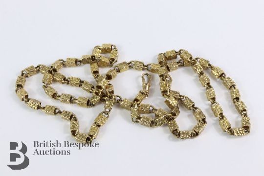 9ct yellow gold box chain necklace, London hallmark dated 1988, mm CG, approx 78 cms, approx 52.9 gms.