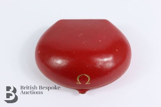 Lady's 9ct yellow gold Omega wrist watch. The wrist watch having a gold-effect face with baton markers, movement nr 34993684, case nr 82711-976 on a 9ct gold strap measuring 13 cms, weight without movement, 15.3 gms with the original Omega velvet-lined leather box. *CRCondition ReportWatch glass needs replacing, minor surface abrasion, watch moving forward at time of testing.