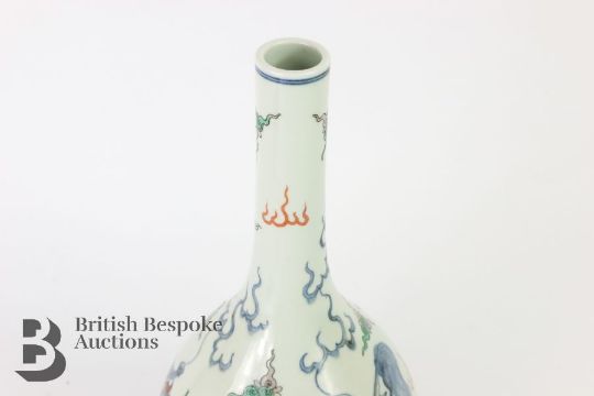 Chinese porcelain bottle vase, decorated with dragons and cloud scrolls, Kangxi marks to base, measures approx. 29cms h.