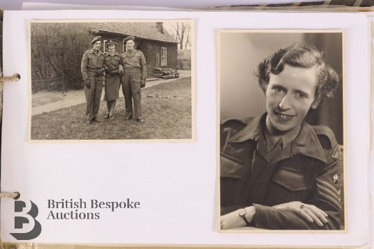 WWII medals awarded to Janet Barr 299683 including France and Germany Star, Defence Medal and War Medal, together with her Soldiers service and Pay Book; trench art lighters x 2 and an album of photographs entitled Lubeek Belgium 1926.