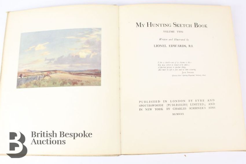 Lionel Edwards My Hunting Sketch Book Vol II, 1st edition, hardcover, publ. in London by Eyre and Spottiswoode Limited.