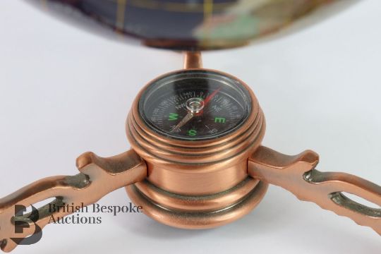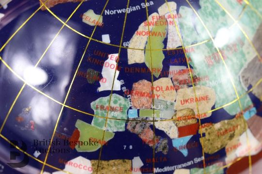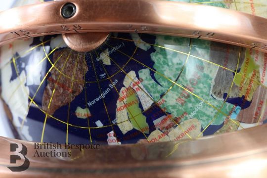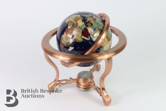 A semi precious gem stone globe with compass to base, measures approx. 27.5 cms.