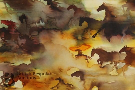 Birim Aksüyek (Turkish b.1958) equine watercolour, entiteld 'Running Wild' signed and dated lower left, approx 33 x 38 cms, framed.