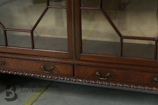 Victorian mahogany display/ book cabinet, three internal shelves, with twin astral glazed doors, approx 142 w x 175 h x 35 cms.