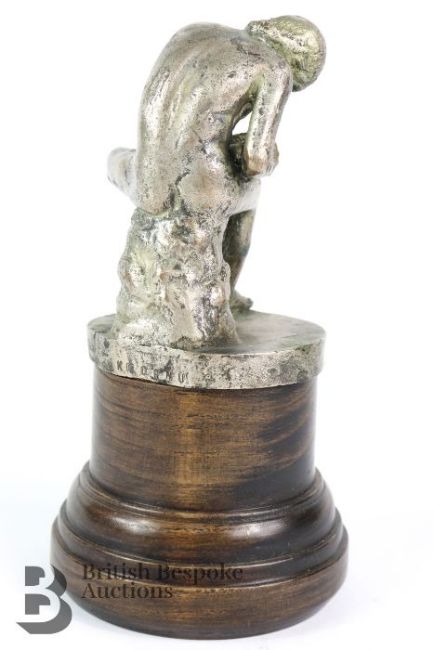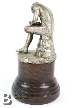 An accessory mascot depicting Achilles, the hero of the Trojan war from Greek mythology, to remove the thorn from his heel. Silver plated on bronze, circa 1920s, signed K Cornu. Measures approx. h 16cms.-