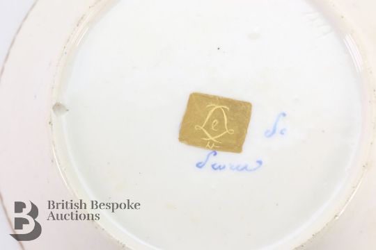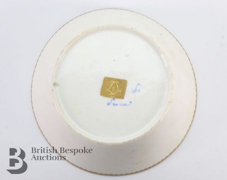 A French Sevres porcelain tea bowl, cobalt blue rim with gilded decoration, both the lower tier and central reserve painted with roses, gold painted mark for 1758 and Le Sevres in blue approx 13.5 x 4 cms.