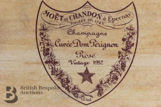 Case of three Moet et Chandon Dom Perignon Rose Champagne, 1982, in the original case. Case is unopened.