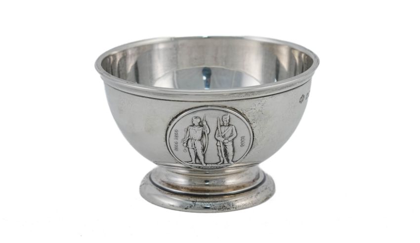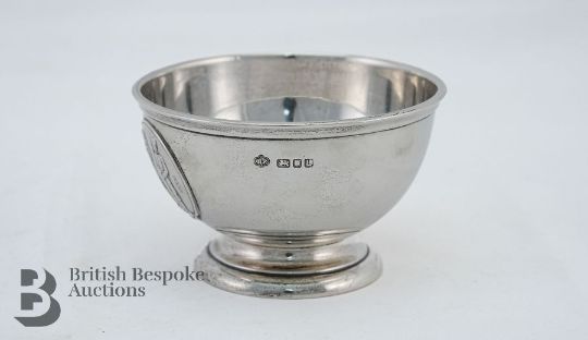 George VI silver bowl, circular form on circular foot, embossed with the National Rifle Association logo, London hallmark dated 1946, mm H.Phillips, approx 132.2 gms.