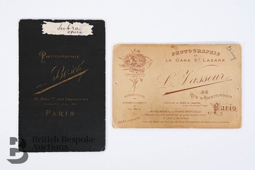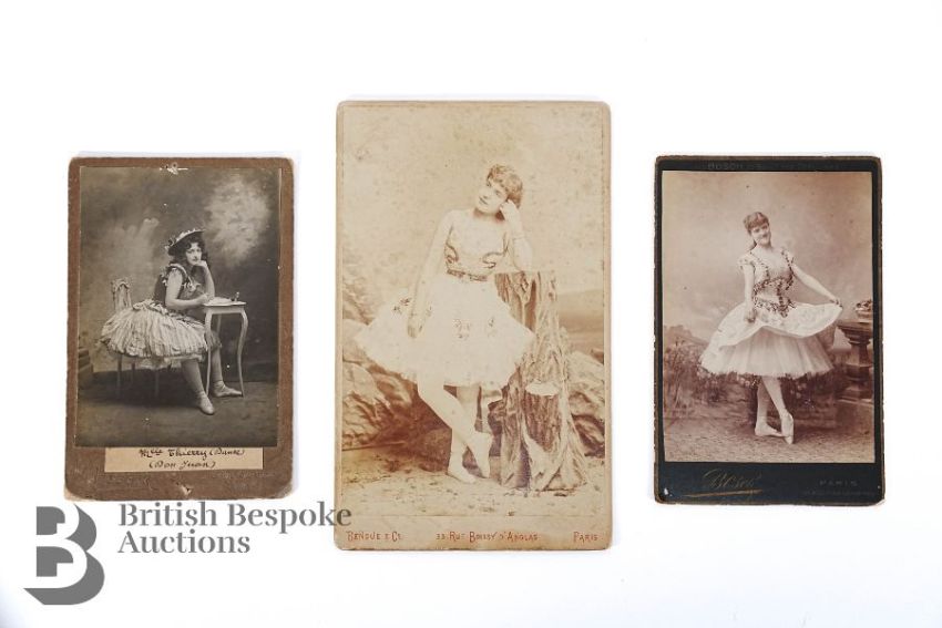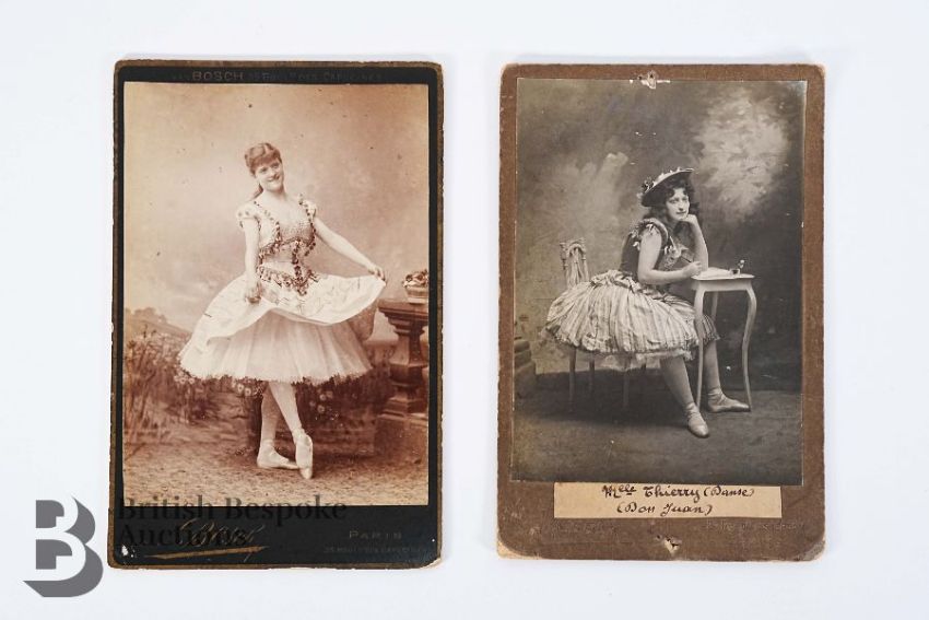 This lot includes two late 19th century French cabinet photographs - featuring Mlle Thierry, in the ballet Don Juan, photographed by L. Vasseur Paris together with another French cabinet photograph of a dancer by van Bosch Paris. (3)