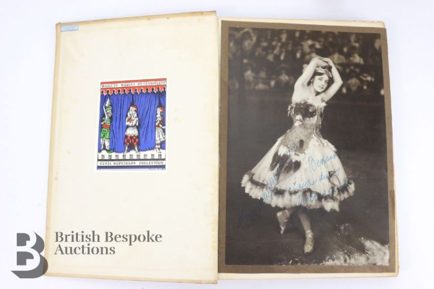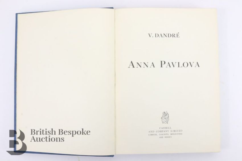 First English edition of this classic ballet book by Valerian Svetlov, published by C.W Beaumont, London, 1922, featuring the famous prima-ballerina Thamar Karsavina (1885-1978) with many full page illustrations some sepia toned and others in colour, the back of the book features some images of her in her most notable roles, included is a signed full length black and white photograph inscribed and signed, showing Tamara in costume from a production of the Firebird where she starred alongside Nijinsky circa 1915, with the original book plate for the Cecil  Hopkinson Collection. This lot includes a 1932 copy of Dandré V. Anna Pavlova (good condition)