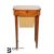Regency satinwood inlaid sewing table, the inlaid top opens to reveal a plaited silk well, with chamfered corners and decorative inlay to the drawer front and legs, raised on tapering legs, approx 45 x 35 x 71 cms.