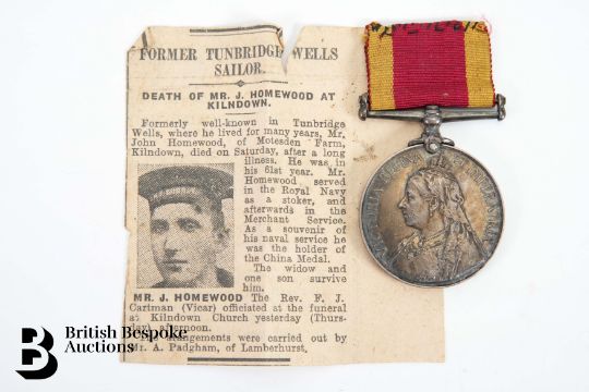 Footnote: The China War medal 1900 was a British campaign medal approved on 1st January 1902 for issue to British and Indian land and sea troops who served during the Boxer Rebellion, between 10th June and 31st December 1900.