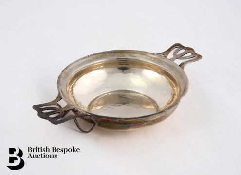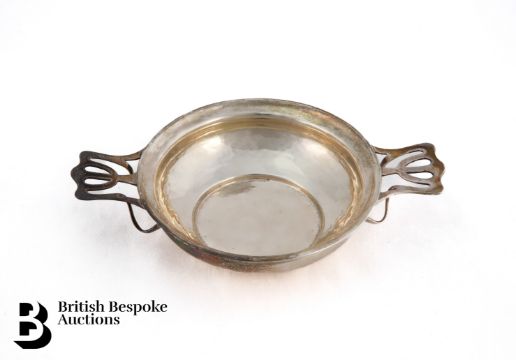 Silver quaich, London dated 1907, with pierced planished handles, approx 14.3 cms diameter (including handles), approx 69.2 gms.