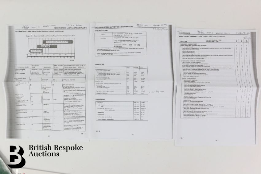 Daimler Double Six V12 Sovereign Series III original handbook, the legendary 5.3 litre V12 Daimler Double Six V12 & Daimler 420 Limousine original brochure. Essential Buyers Guide Daimler Double Six/Jaguar XJ12 & XJ6 1968-1992 by peter Crespin, Daimler/Jaguar Series III Workshop Maintenance Sheets and a Leaping Jaguar walking cane.