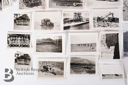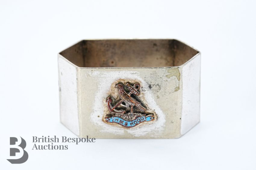 Hand crafted trench art Willy's jeep model car, with wooden seats and rubber tyres, approx 22 cms in length x 9 cms h. This lot includes a part shell from the 1914-1918 war mounted on a treen base approx 8 cms and a WWI inert machine gun bullet manufactured by Belgium manufacturers FN Herstal, two vintage calendars including RFC/RAF (1912-1987) and Welcome Home Falklands Taskforce 1983 and an H.M Armed Forces Veteran pin boxed. This lot includes a copy of The Making of the Longest Day, a motion picture by Darryl F Zanuck about the D-Day invasion and featured amongst many others Sean Connery and Richard Burton and a collection of black and white photographs from the WWII era with notation to the reverse of the photos, a silver plated napkin ring with HMS Hood emblem and a J. Hudson & Co A.R.P whistle.