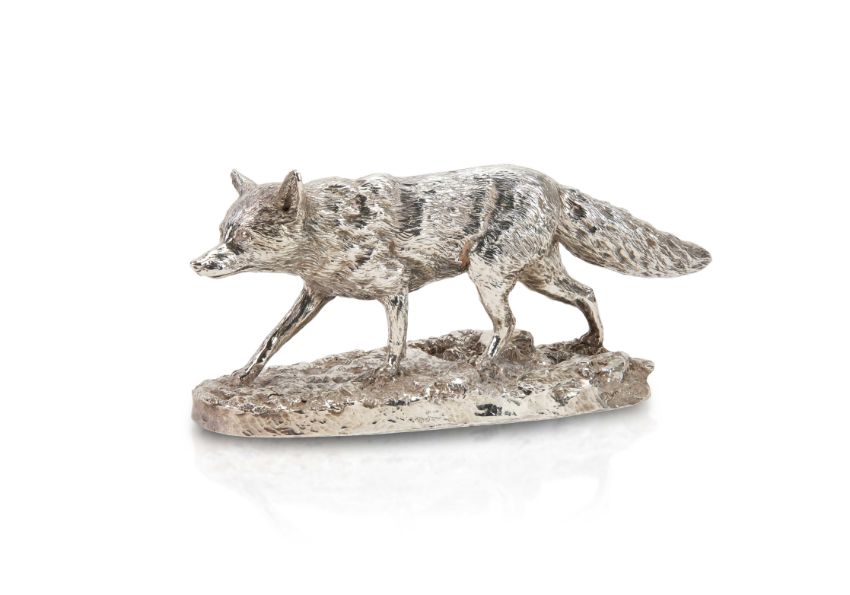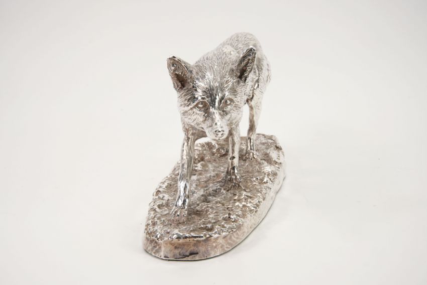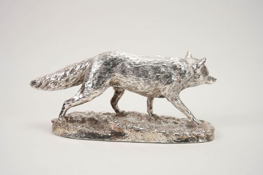 20th century silver filled model of a fox, Sheffield hallmark, signed Donaldson, approx 24 cms in length.