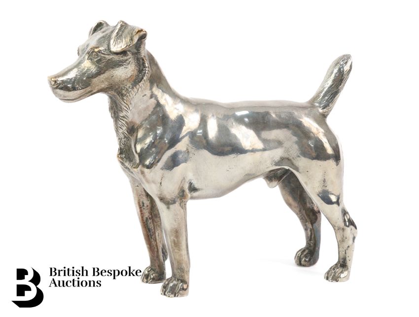 Vintage heavy silver plate on copper fox hound, approx 15 w x 12 h cms.