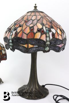 Two Tiffany-style lamps, with dragonfly design. approx 31 & 47 cms respectively.