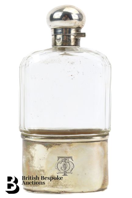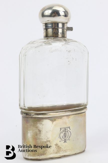 Silver and glass hip flask, London dated 1907, mm G & S Co Ltd, approx 14 cms h.