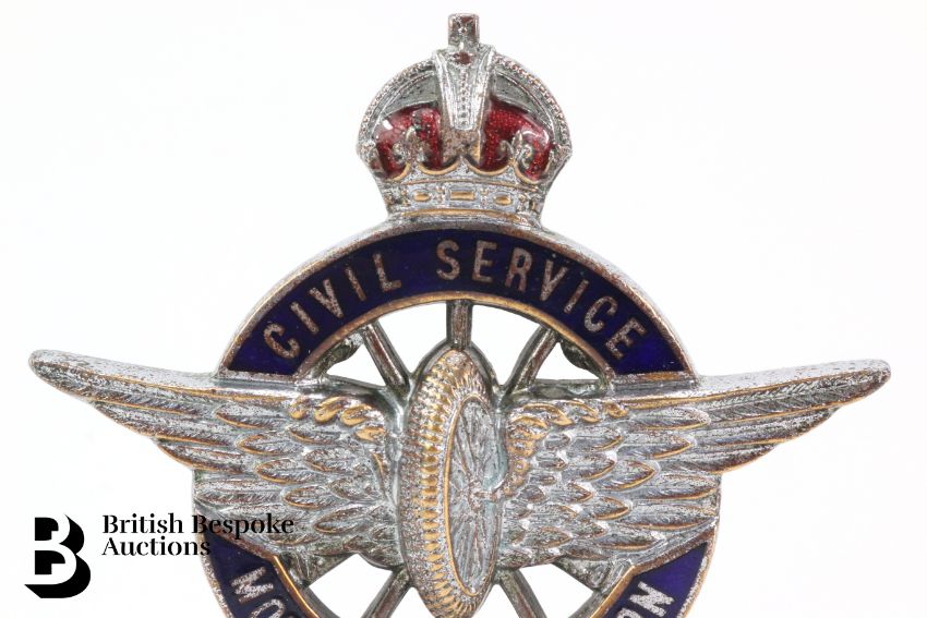 Civil Service Motoring Association full members 1930s motor car membership badge, with good original royal blue and crimson enamel. Mounted to display base.