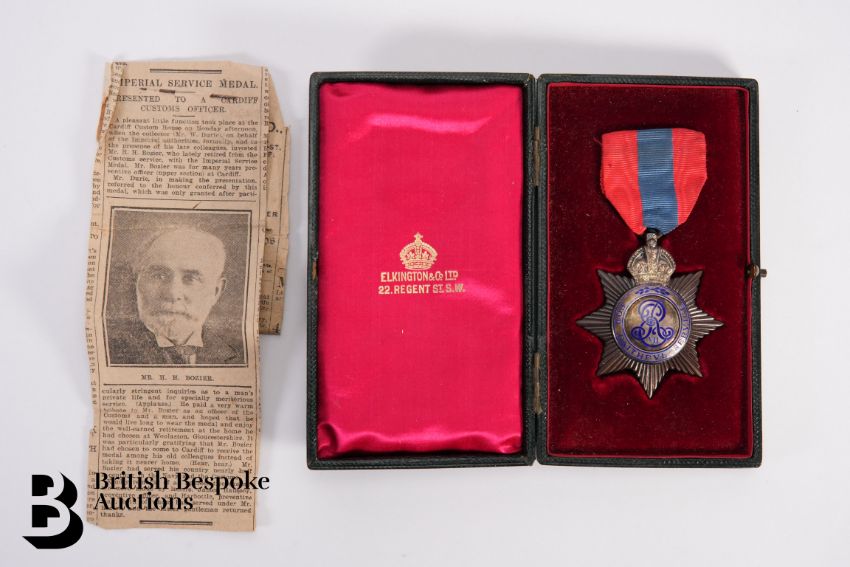 Imperial Service Medal, Edward VII R Star named to Henry H. Bozier Cardiff Customs Officer, in the original presentation box with an associated newspaper article.