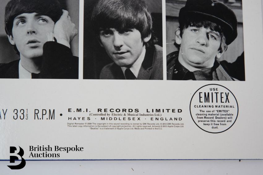 Two records including Lennon John Imagine 2015 and The Beatles - A Hard Day's Night Remastered together with a collage of Beatles postcards, approx 29 x 24 cms, framed and glazed and another image of John Lennon approx 20 x 28.5 cms. (2)