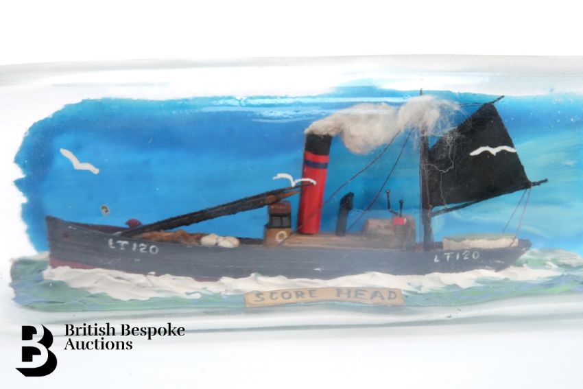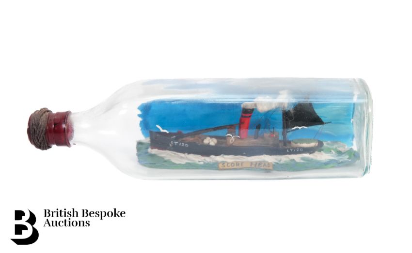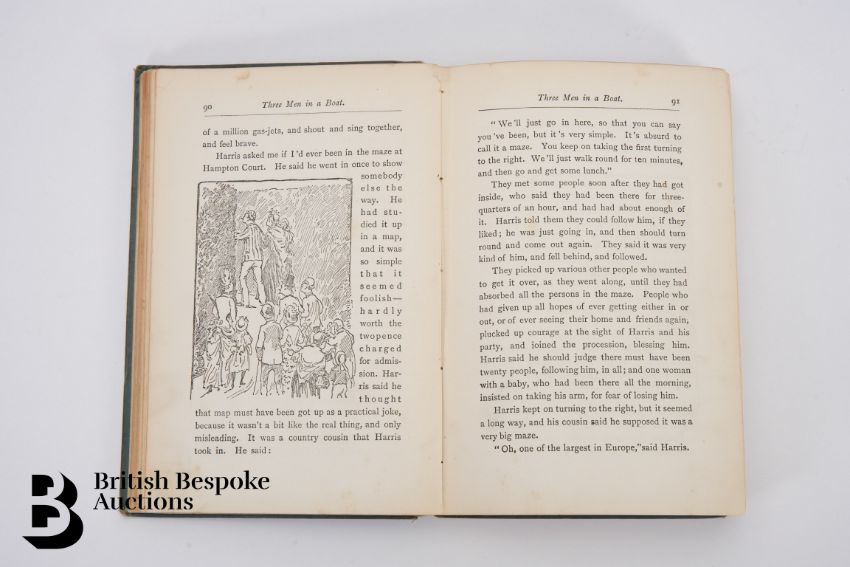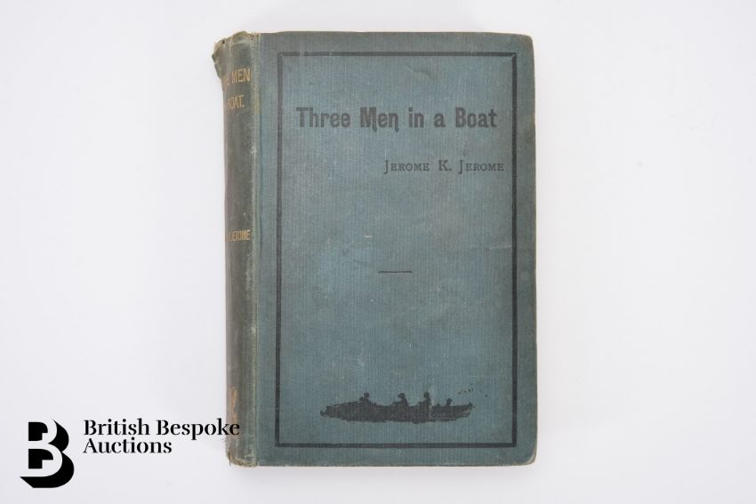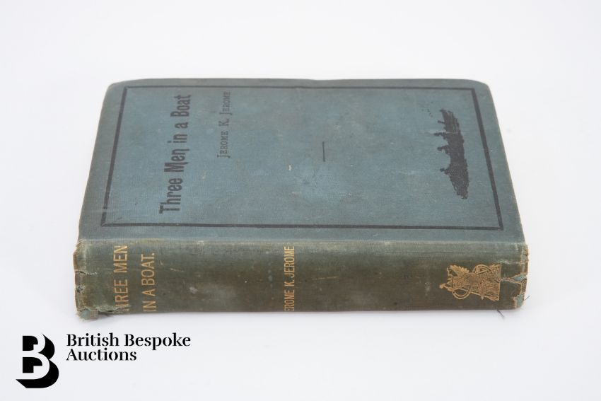 Jerome K. Jerome Three Men in a Boat [....], 1st edition, publ. J.W Arrowsmith and Simpkin, Marshall London, together with a vintage era ship in a bottle, named Score Head, with corked top, approx 27 cms in length, in a Scottish liquor bottle. (2)