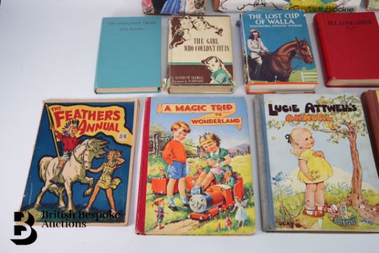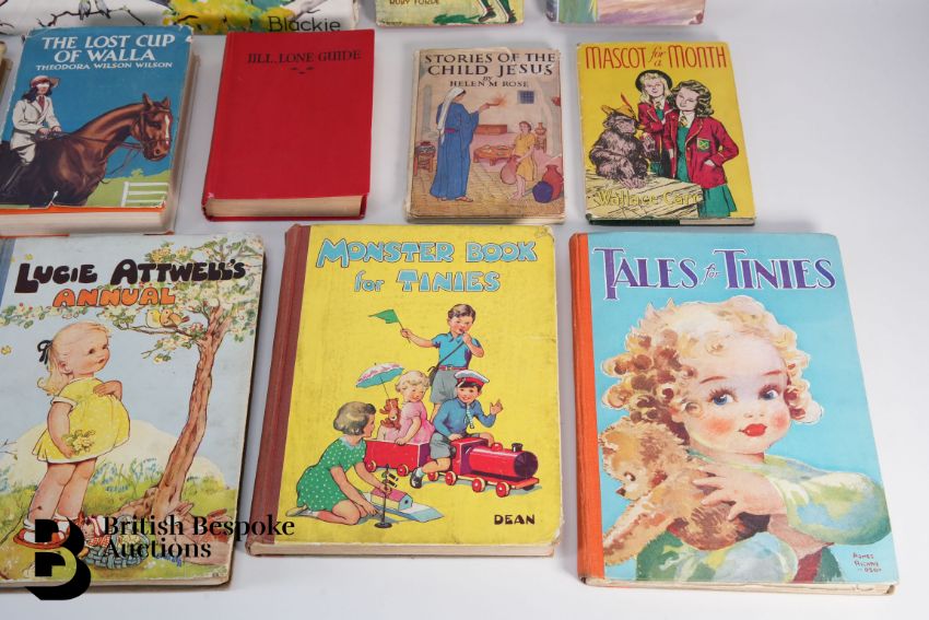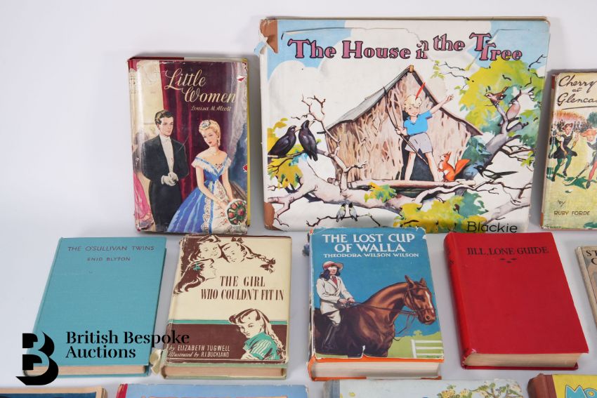 Gregor Ian Smith The House in the Tree, publ. Blackie and Son Ltd, 1945, together with a quantity of other early 20th century books including Tales for the Tinies, publ. Birn Bros Ltd, Lucie Atwell annual publ. Dean & Son 1945, Theodora Wilson Wilson The Lost Cup of Walla, Elsie J. Oxenham Stowaways in the Abbey publ. Collins London and Glasgow, Elizabeth Tugwell The Girl Who Couldn't Fit In, Wallace Carr Mascot for a Month publ John Crowther, Ruby Forde Cherry Jam at Glencastle publ. Dawsons, Enid Blyton The O'Sullivan Twins, Louisa M. Alcott Little Women and Helen M. Rose Stories of the Child Jesus.