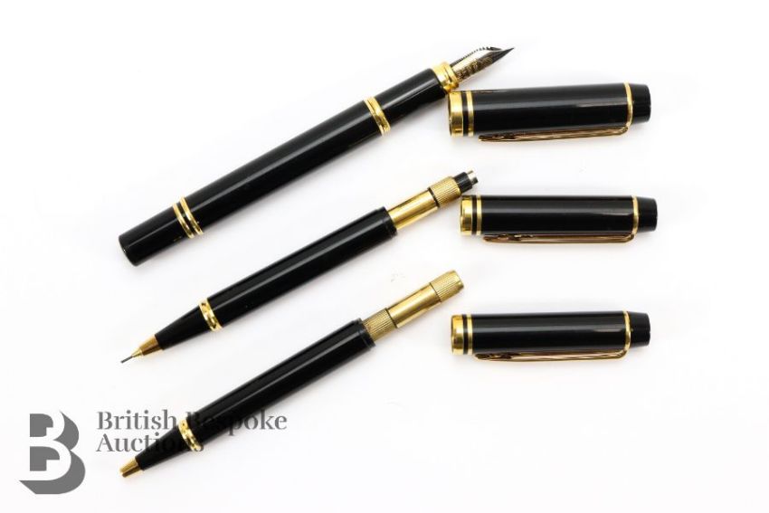 Waterman's pen set, comprising ink pen with 18ct gold nib and twisting filler, biro and propelling pencil.