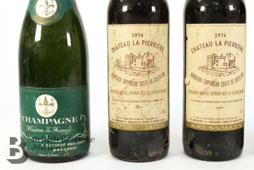 The labels are marked with a couple of tears, ullage on the La Pierrier is approx 5cms to the base of the cork cover. The other two approx 2 and 3 cms from the base of the cork cover.