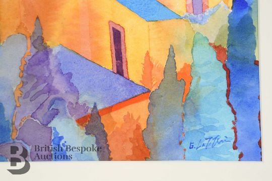 Giuliana Lazzerini (20th century Italian) watercolour, entitled Blue Moon, approx 37.5 x 27 cms, framed and glazed.