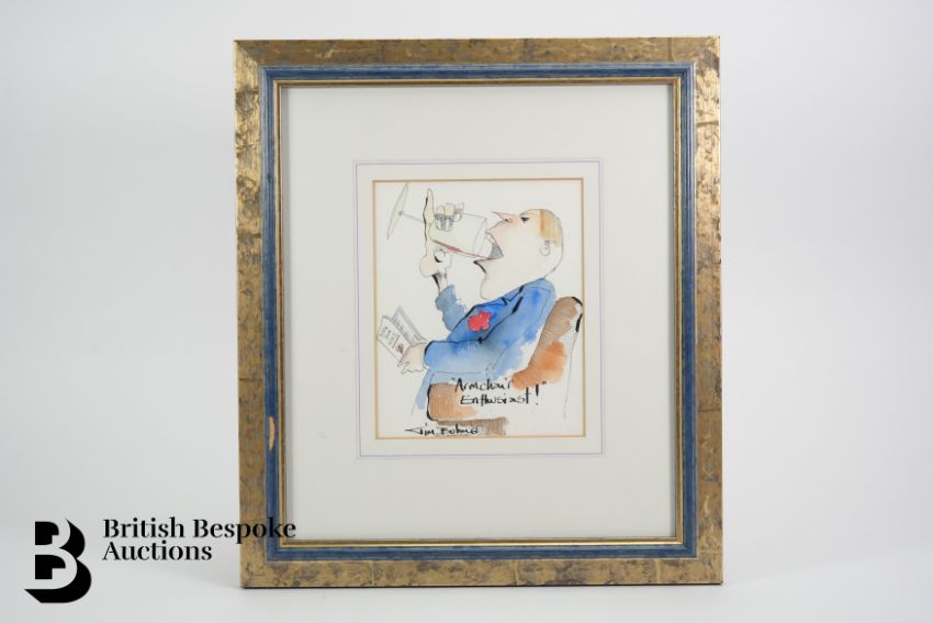 Two Tim Bulmer watercolours entitled 'Open Day, approx 36 x 27 cms and 'Armchair Enthusiast' approx 14 x 17 cms and 'There's Always Next Time' approx 14 x 17 cms. This lot concludes with two signed Tim Bulmer limited edition prints entitled 'The Gourmet among the Gourmands' 192/195 and 'Vive la Differance' approx 68/200.