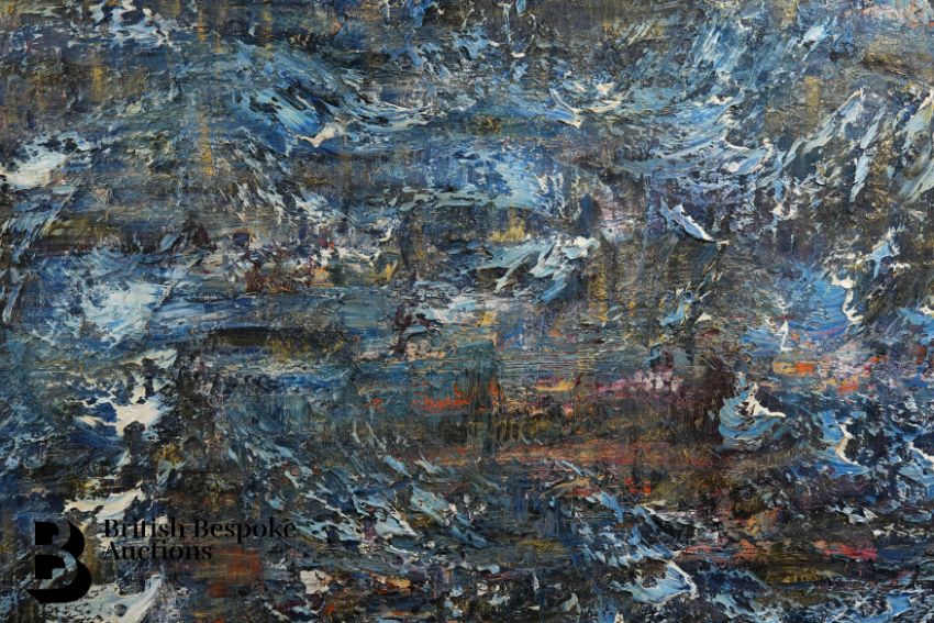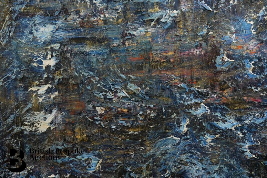 Tom Katz (20th century) an impressive oil on canvas, entitled 'Opera of the Ocean #4', approx 6ft x 4ft cms, purchased from the artist's studio West Bay, Dorset.
