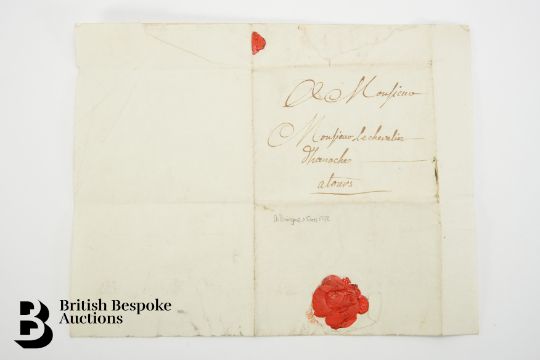 This fine 18th century letter is written in French by Hugues-Barthelemy Alexandre D' Hanache concerning trade in cotton and coffee and the defeat of the French by the British under Admiral Sir George Brydges Rodney at the Battle of the Saintes. An interesting early letter in fine condition apparently sent privately on board a ship as it is devoid of any postal markings. (Transcript and other paper of explanation/discussion all included in this lot, all in English.) -