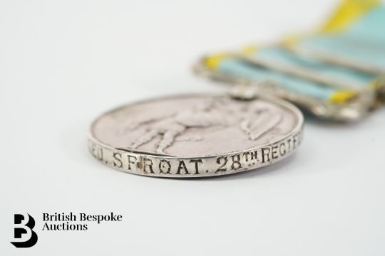 Crimea Campaign medal (1854-56) named to 3057 Pte.Geo. Sproat 28th Regiment Foot (North Gloucestershire), with clasp for Sebastopol and Alma, appears on the Roll.