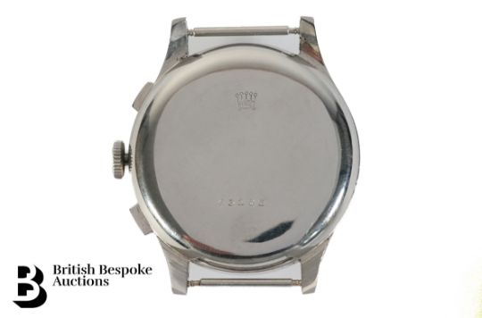 A rare 1940s stainless steel Rolex chronograph, model 2508 with antimagnetic dial. The watch having a 38mm white face with Arabic and baton markers, small seconds and 30-min register, tachymeter and telemeter graduations, case nr 43205.
