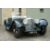 Chris Leyshon-James SS100 Jaguar replica electric car. The bespoke model benefits from a steel frame and hand beaten panels, beautifully finished in British racing green, with steel axles. The interior of the car has a leather seat with steering wheel and replica dials to the dashboard. The green body sports a Jaguar hood ornament, with two headlights and a spare tyre attached to the rear. The replica car is electrically driven via the rear wheels. Battery with a 6 month guarantee, plus one key and plug in wire with instructions for use. Great for the little motorist in your life! Approx 180cm (l) x 70cm (w)