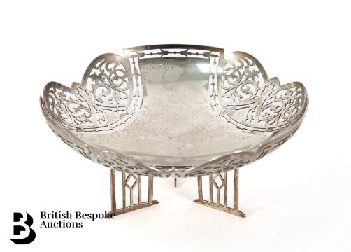 George V silver bon bon dish, with pierced decoration, Sheffield hallmark dated 1915, mm Walker & Hall, approx 20 x 20 x 9 cms, approx 387.6 gms.