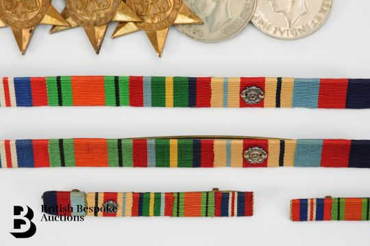 WWII medal group, Instructor Lieutenant Commander L.D Vine, Royal Navy, including 1939-45 Star, The Africa Star (with North Africa clasp), The Pacific Star, Defence Medal and War Medal 1939-45, complete with miniatures and two service ribbons for both together with Instructor Lieutenant Commander