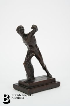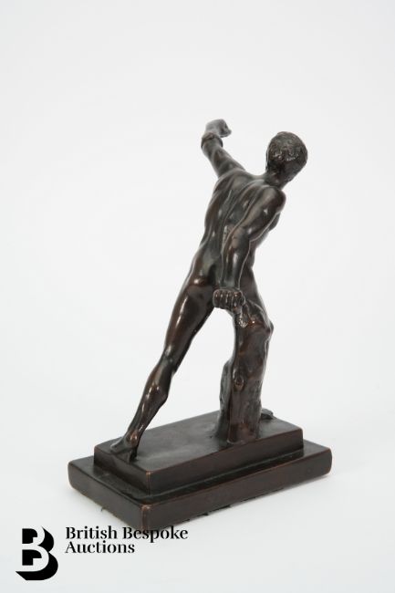 After the antique bronze sculpture of the Borghese Gladiator, early 20th century, supported on a double plinth, approx 21 cms h.