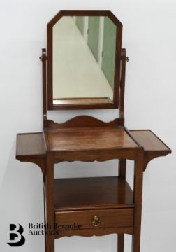 Gentleman's Edwardian mahogany shaving/wash stand, with a single drawer, fly supports and a lower tier, approx.150 cms.