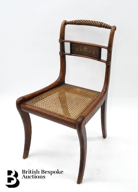 Three early 20th century chairs, with cane seating together with a fruitwood chair with a green leather seat. (4)