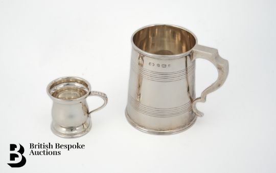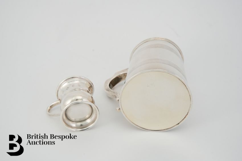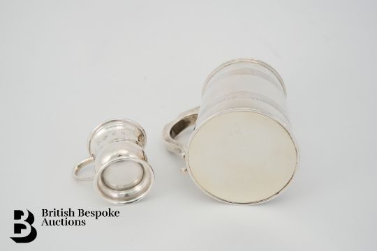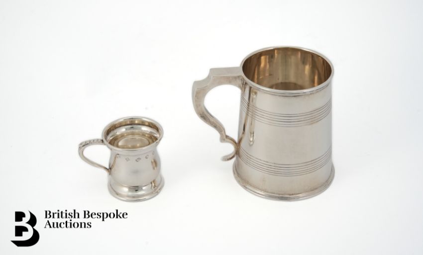 Silver christening mug, Birmingham hallmark dated 1903, mm JW, approx 181 gms together with a miniature silver tankard Birmingham hallmark dated 1977, mm JR, 4.4 cms h, 35.2 gms.