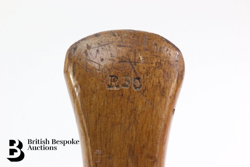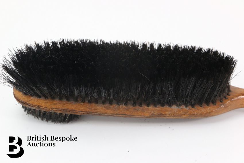 A wooden chauffeurs uniform brush, stamped 'made from hun propellor RFC' Royal Flying Corps, numbered WWI. Believed to have been made from a WWI aircraft propellor.
