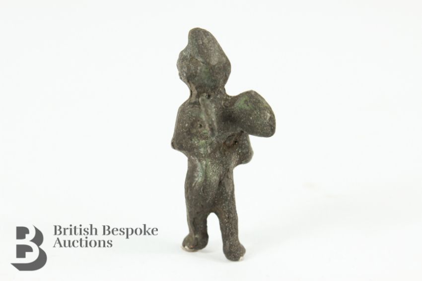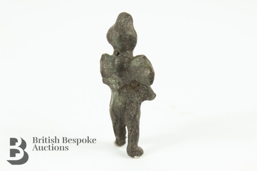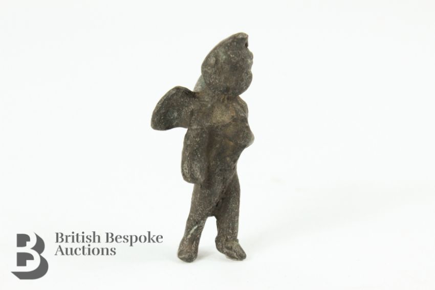 1st century, small bronze figurine of a winged putti, approx 5 cms h.