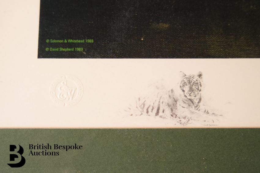 David Shepherd (1931-2017) limited edition print, entitled 'Burning Bright', 929/2000, signed with the publisher blind stamp in the lower margin, approx 79w x 50 h cms, framed and glazed.