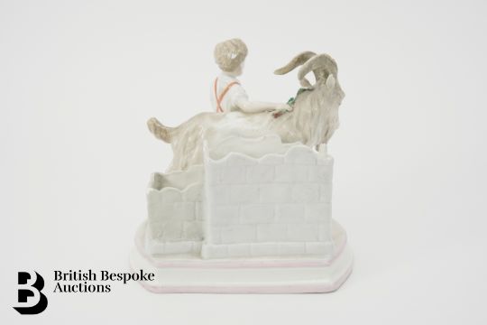 KPM porcelain spill vase, a youngster with a goat, approx 12 cms h.