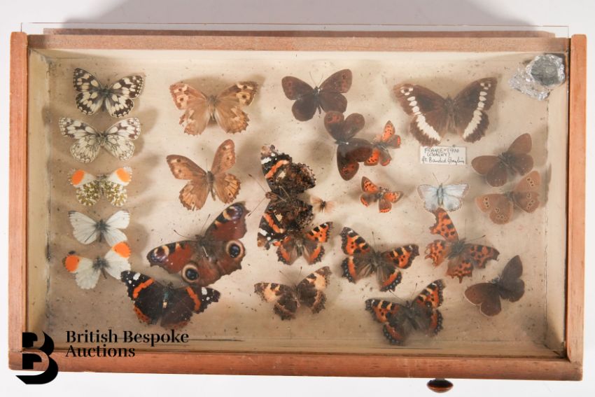 Drawer 3 - contains a collection of Tortoiseshell, Peacock, Red Admiral and others, a Great Banded Grayling caught in France in 1970, 25 in total.
